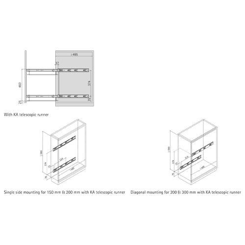 Loading capacity 22.5 to 30 kg with KA telescopic runner