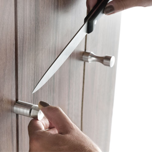 Thanks to this arrangement, the knives are easily accessible while cooking and the wood panel gives an additional aesthetic value.