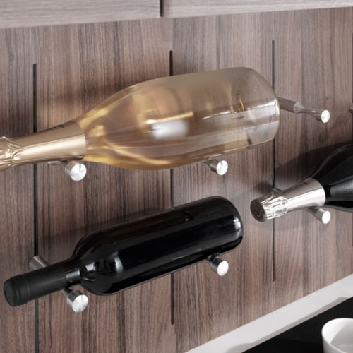 Above: the Pin Wine supports are fixed in tiered pairs, each pair carrying up to 3 bottles. This solution allows the secure and flexible arrangement and flexible arrangement of several bottles.