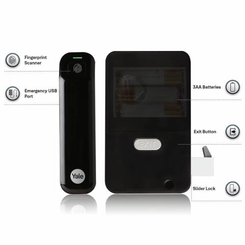 Yale Fingerprint Wardrobe Lock for Sliding Door- Handle- Black